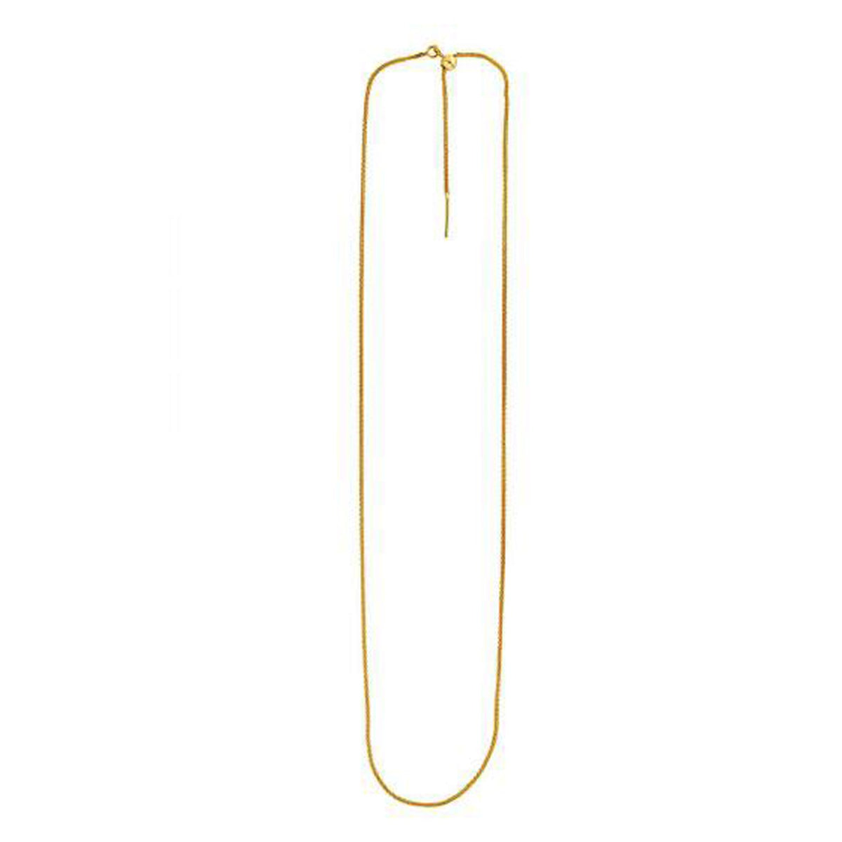 Endless adjustable wheat chain crafted in 14k yellow gold measuring 1.10 millimeters in width. Adjustable up to 22 inches in length and secured with a Draw String clasp.