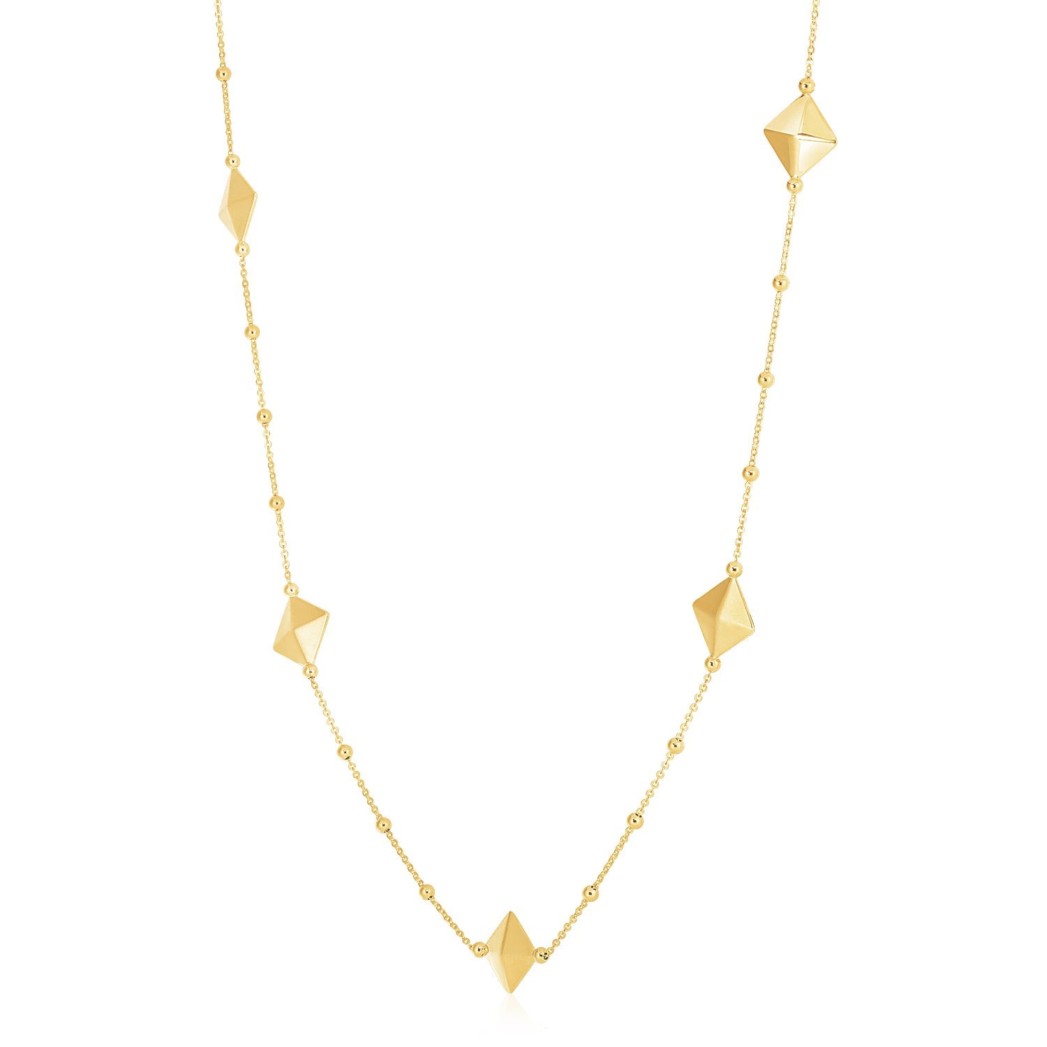 14k Yellow Gold High Polish Pyramid Station Necklace