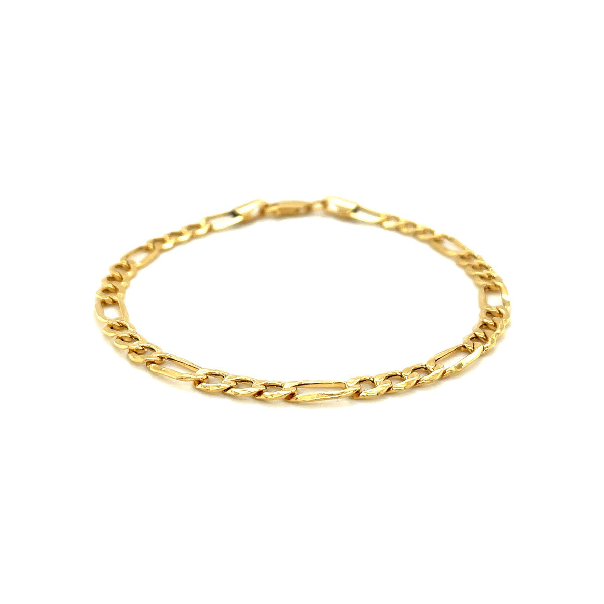 This Lite Figaro bracelet comes in 14k yellow gold and has a width of 4.6 millimeters. Secured with a lobster clasp.