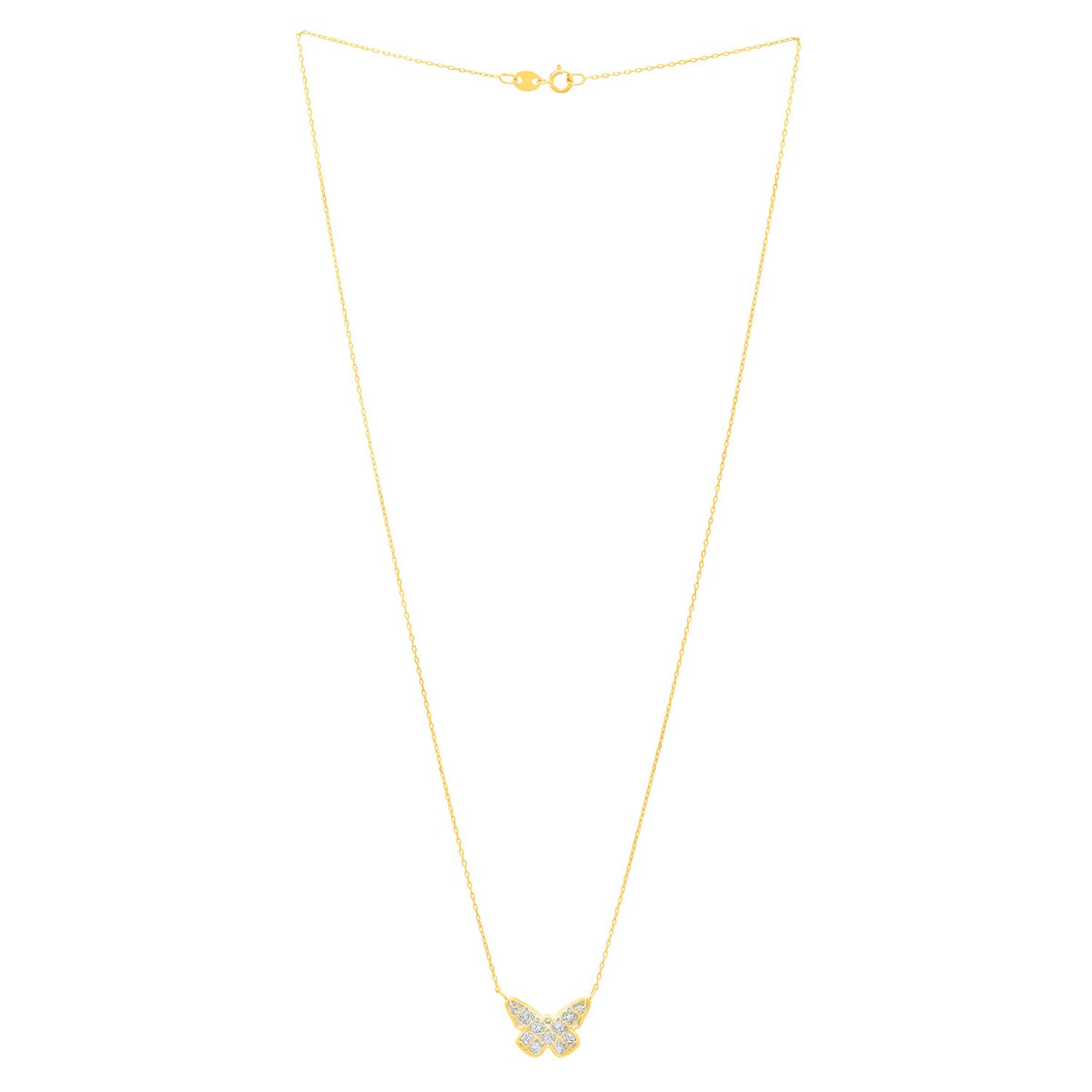 Checkered Butterfly Necklace in 14K Yellow Gold
