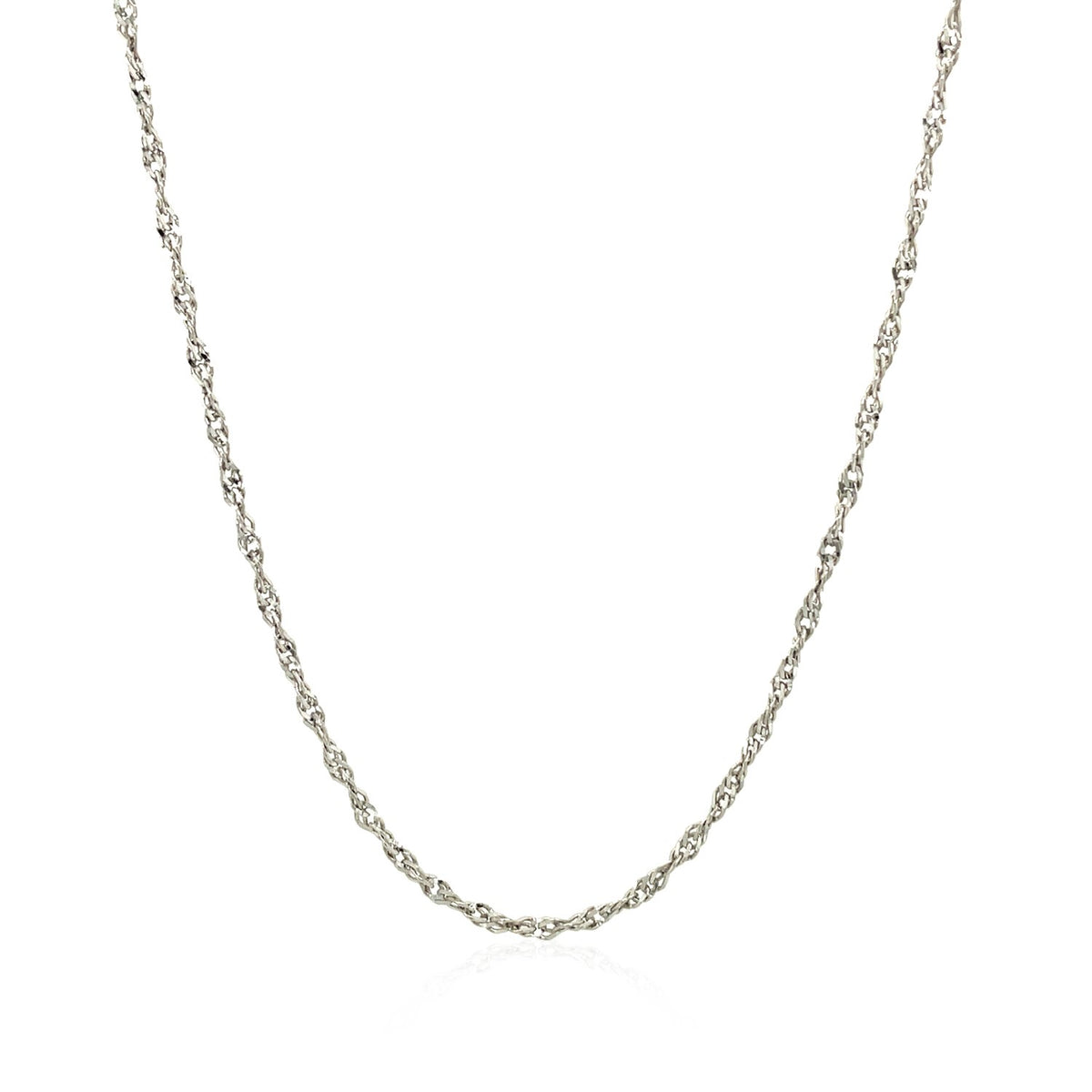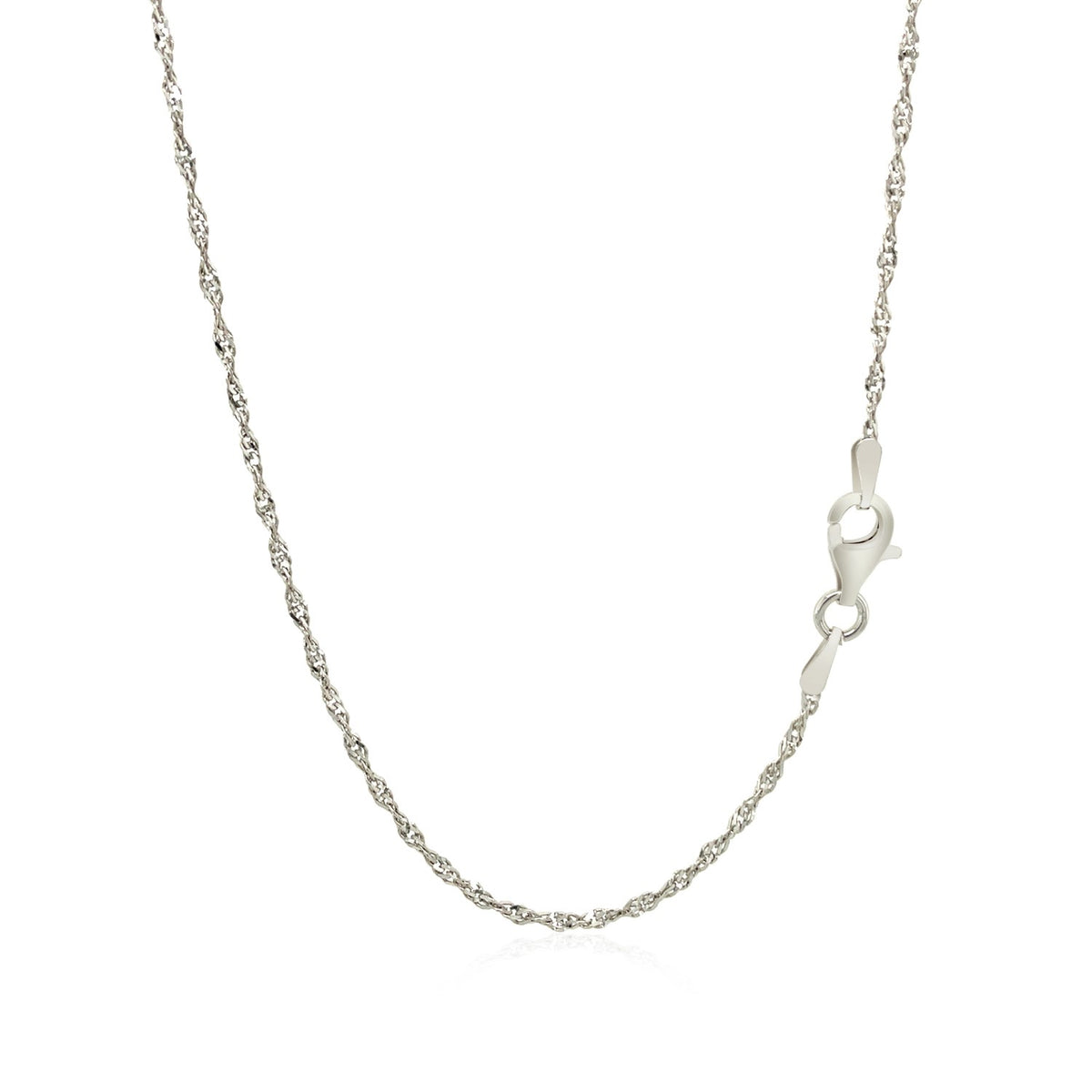 This classic chain crafted in gleaming sterling silver with rhodium polish. Featuring a Singapore type design, it had a width of 1.50 millimeters and secured with a lobster clasp.