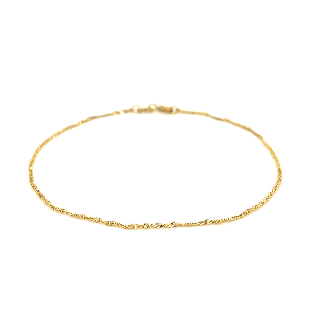 This Singapore bracelet comes in 14k yellow gold and has a width of 1.0 millimeters.
