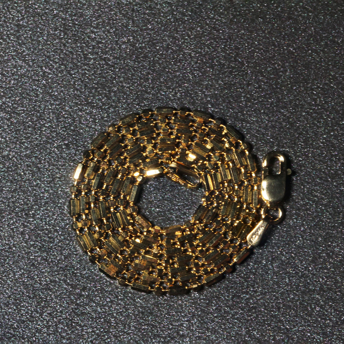 This diamond cut alternating bead chain comes in 14k yellow gold and has a width of 1.30 millimeters.