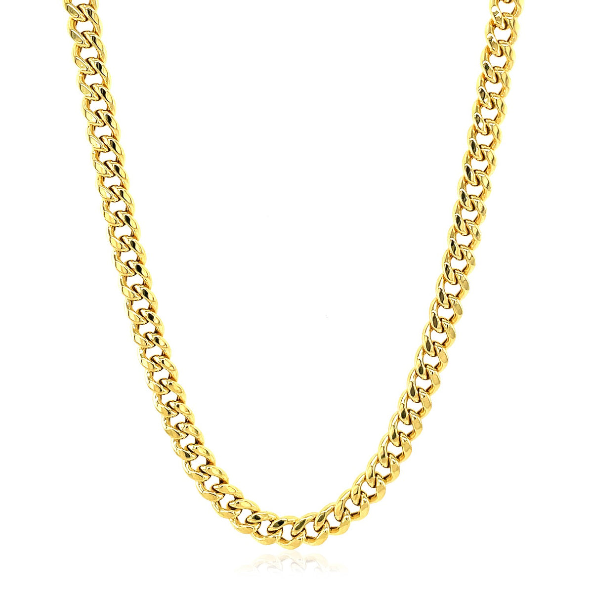 This semi solid Miami cuban chain comes in 14k yellow gold and has a width of 4.5 millimeters.