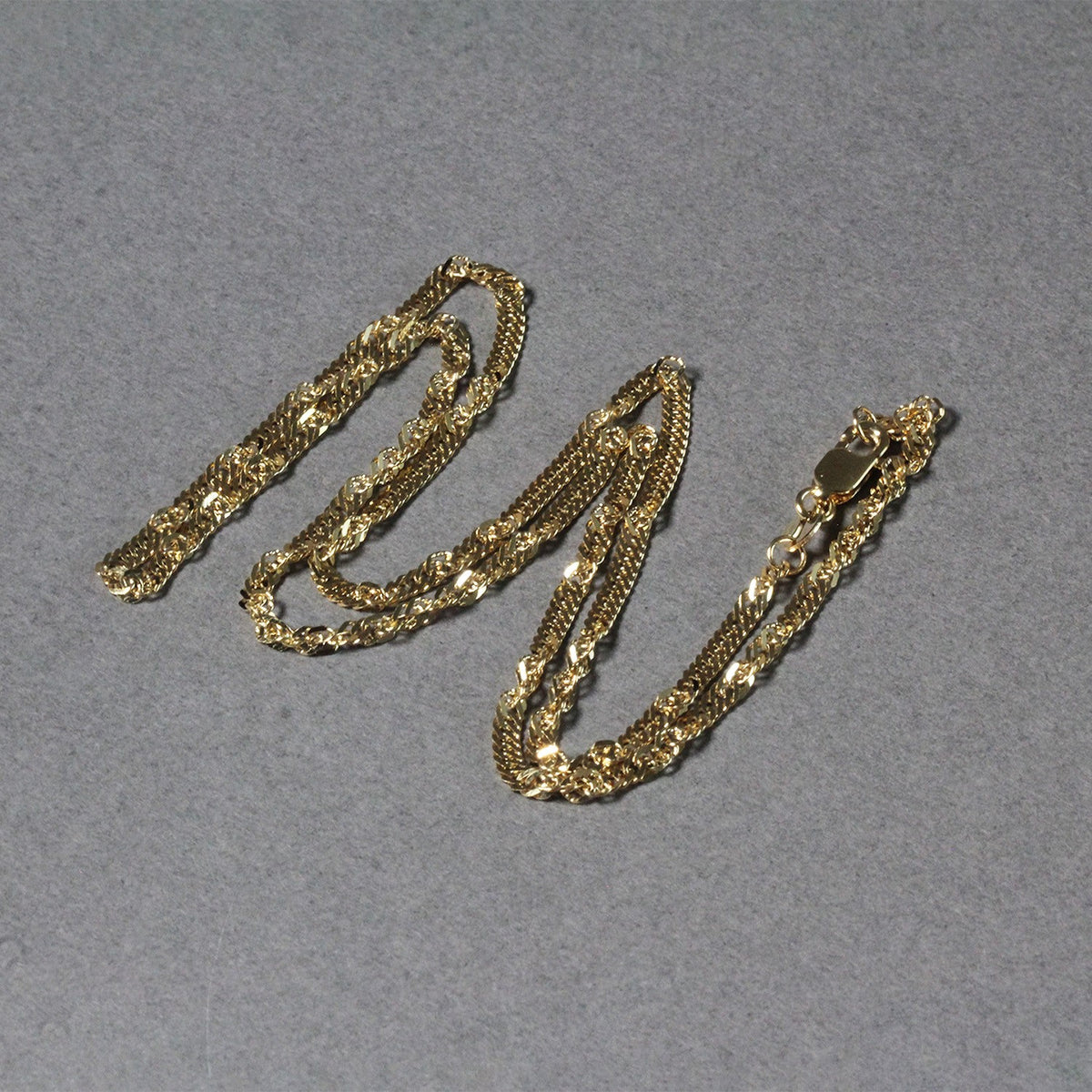 This Singapore chain comes in 14k yellow gold and has a width of 2.10 millimeters.
