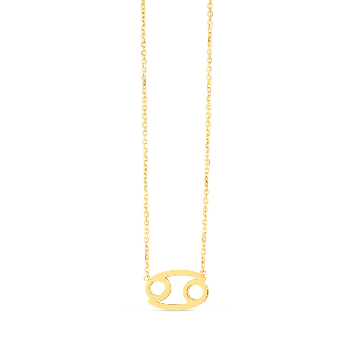 This Cancer necklace is beautifully crafted in 14k yellow gold with a high polish finish & secures with a spring ring clasp. This beautiful piece is hand crafted & a perfect piece for that special cancer in your life. Measuring 18 inches in length. Don't forget the matching earrings!