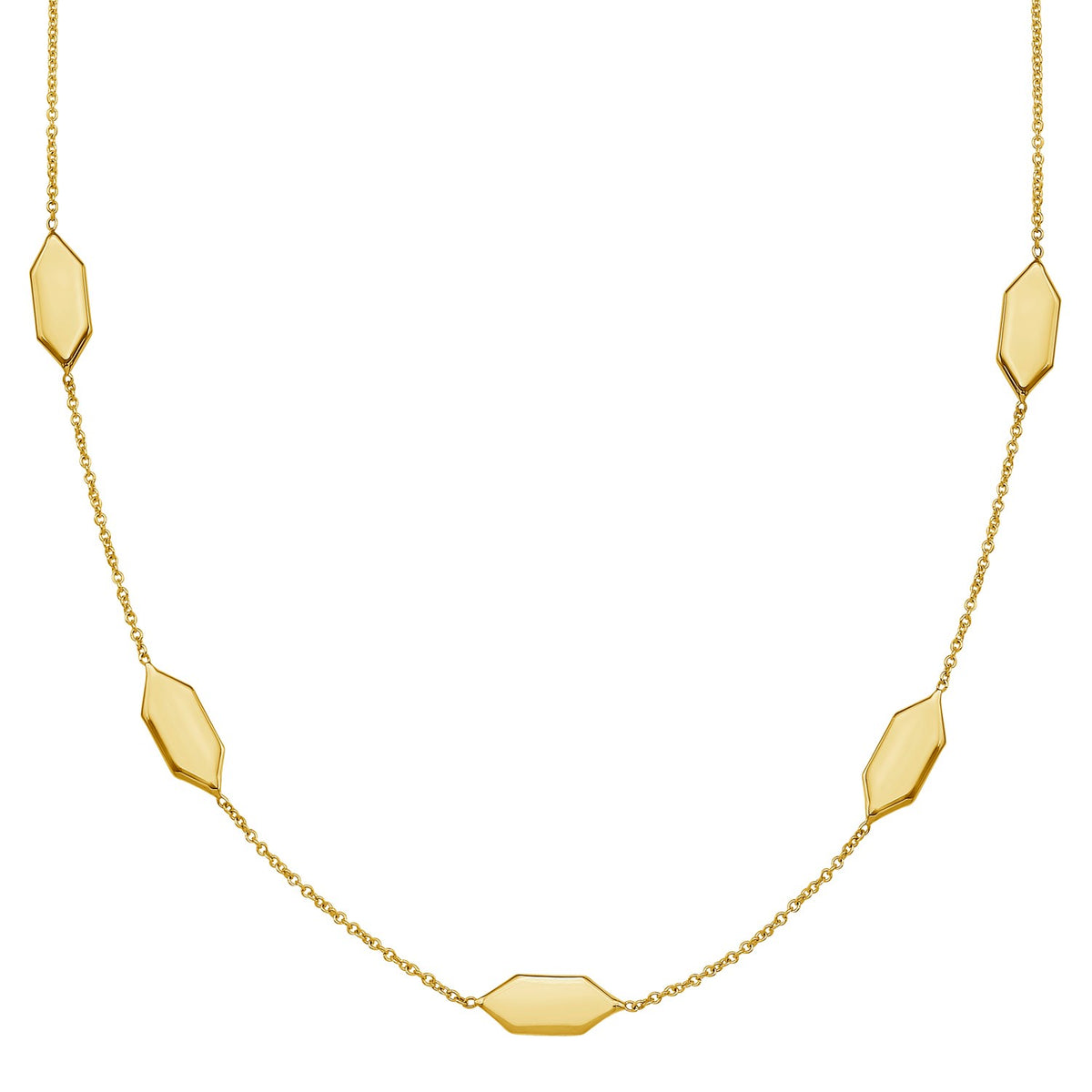 14K Yellow Gold Elongated Hexagon Link Necklace