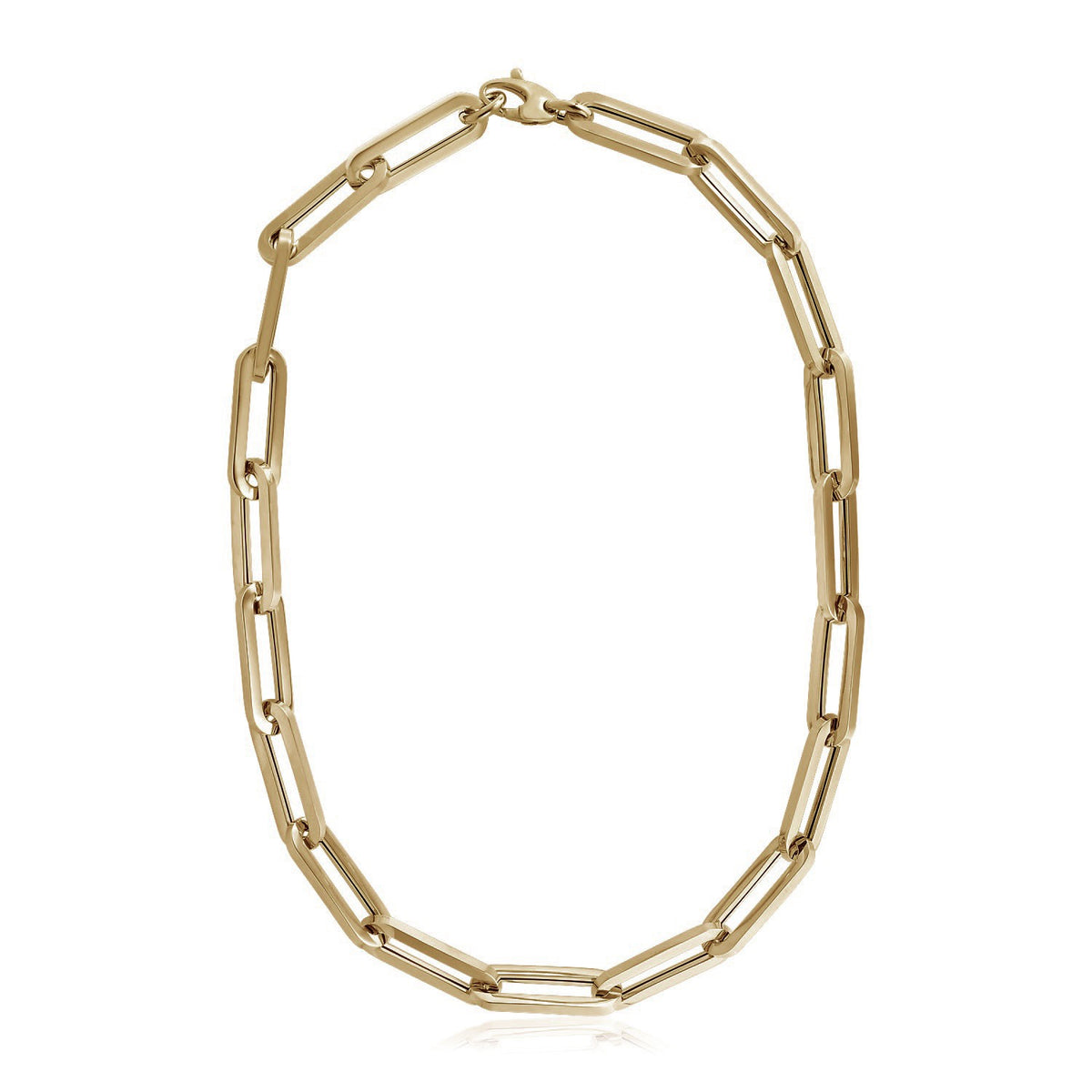 Make a statement with this exquisite 14k yellow gold necklace of boldly polished links of paperclip chain. Necklace is 18 inches long, 9.8mm wide, and closes with a lobster clasp.