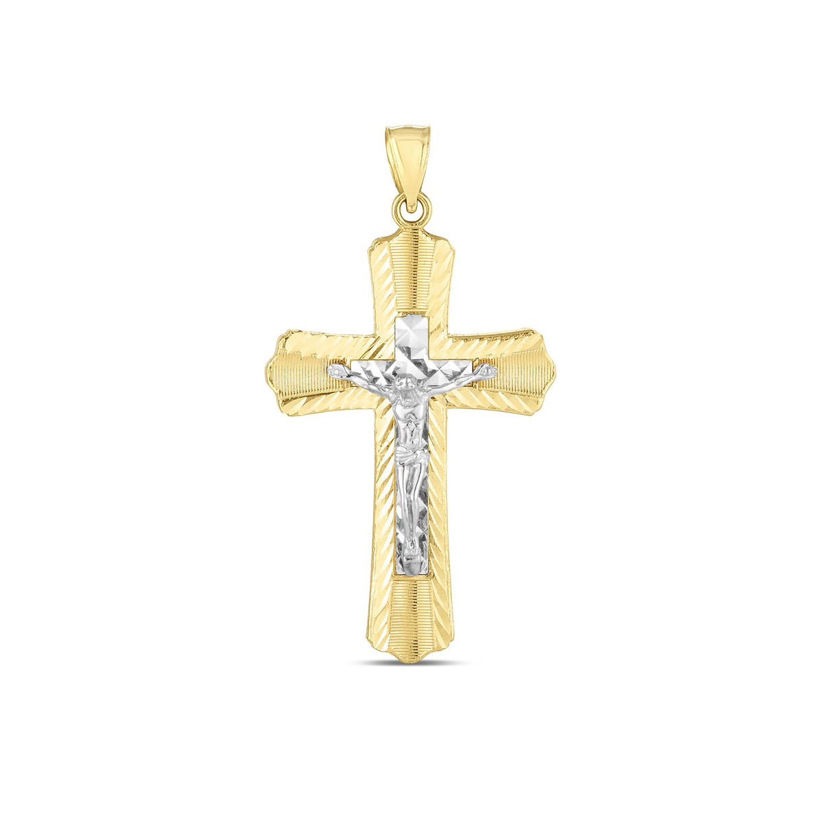 14k Two Tone Gold High Polish Diamond Cut Cross Pendant