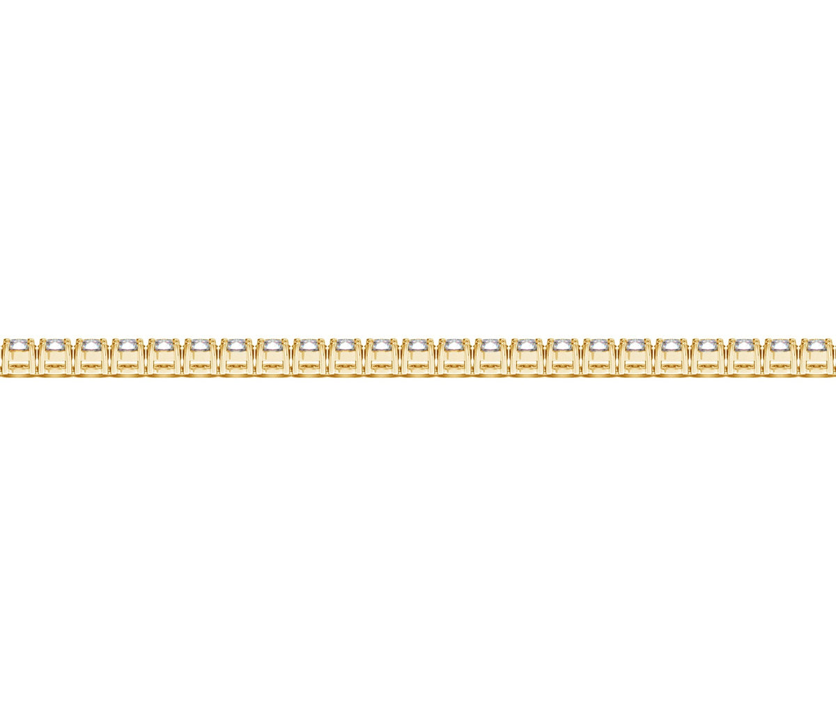 Classic four prong 2 carat total weight diamond tennis bracelet showcasing perfectly matched brilliant round cut lab grown diamonds set in 14k yellow gold.