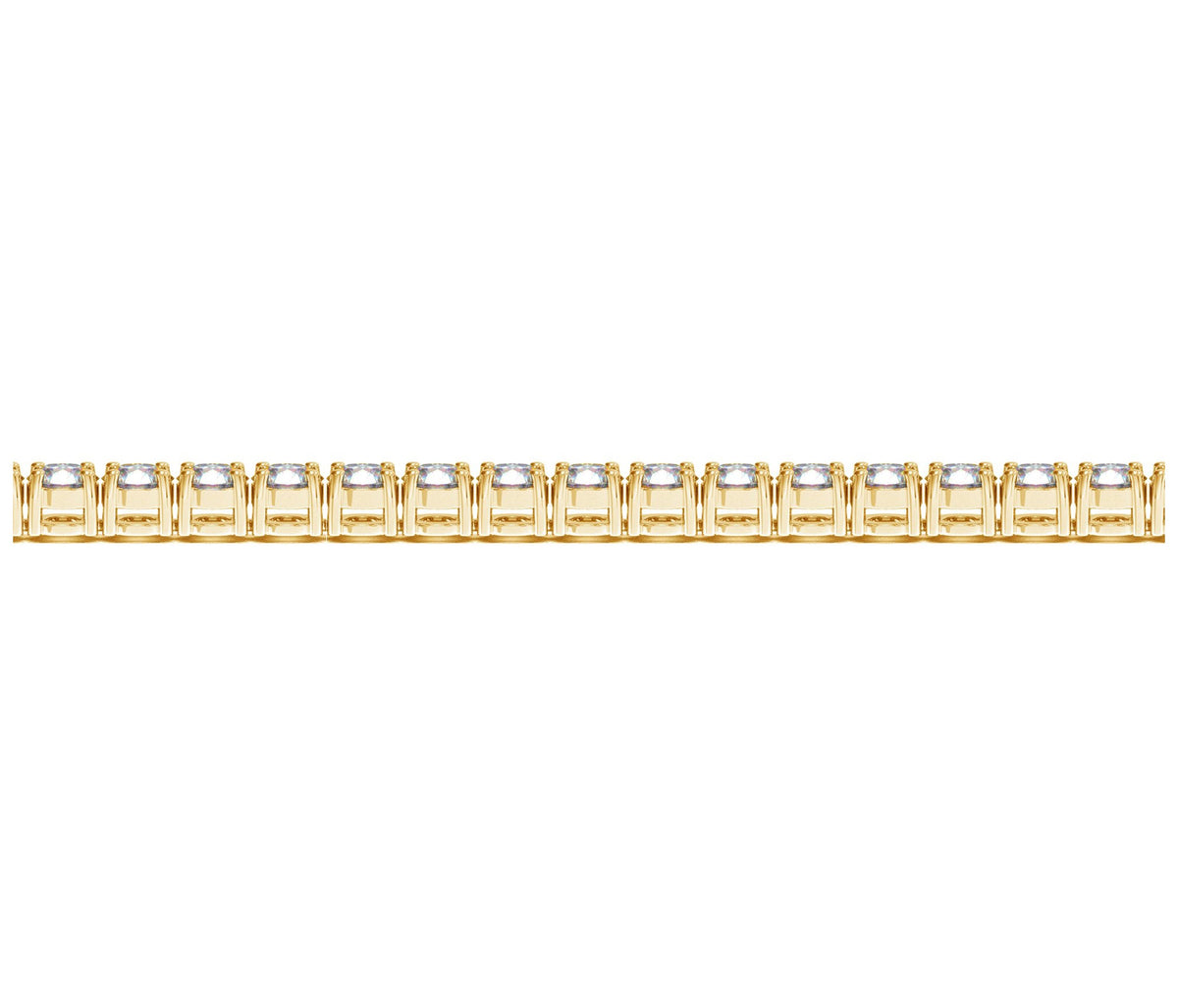 Classic four prong 8 carat total weight diamond tennis bracelet showcasing perfectly matched brilliant round cut lab grown diamonds set in 14k yellow gold.
