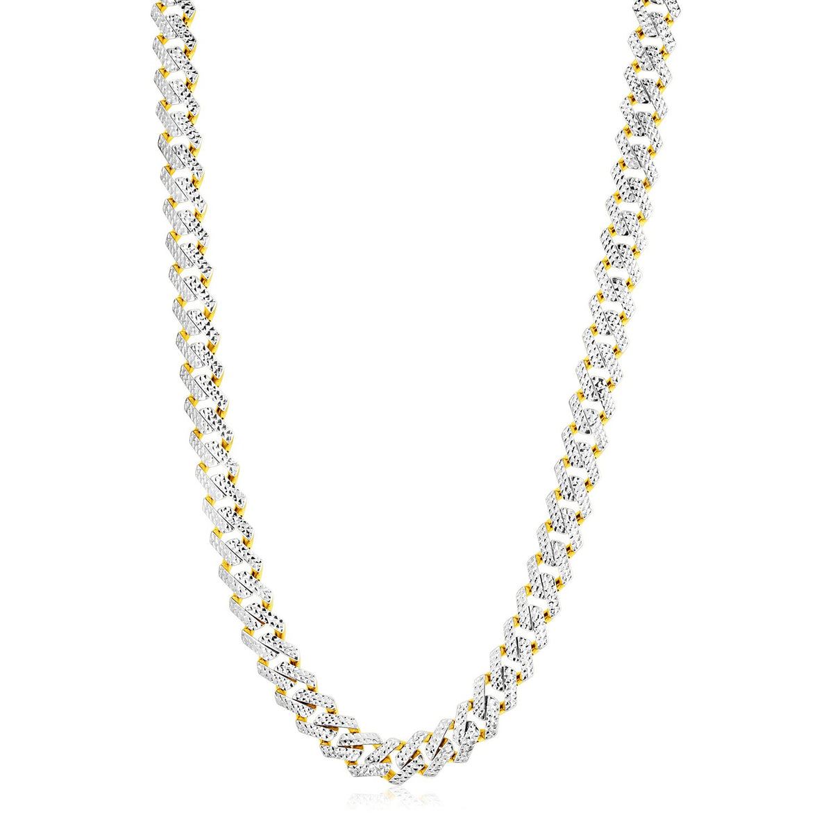 14k Yellow Gold White Pave High Polish Modern Lite Edge Chain (11.50 mm)