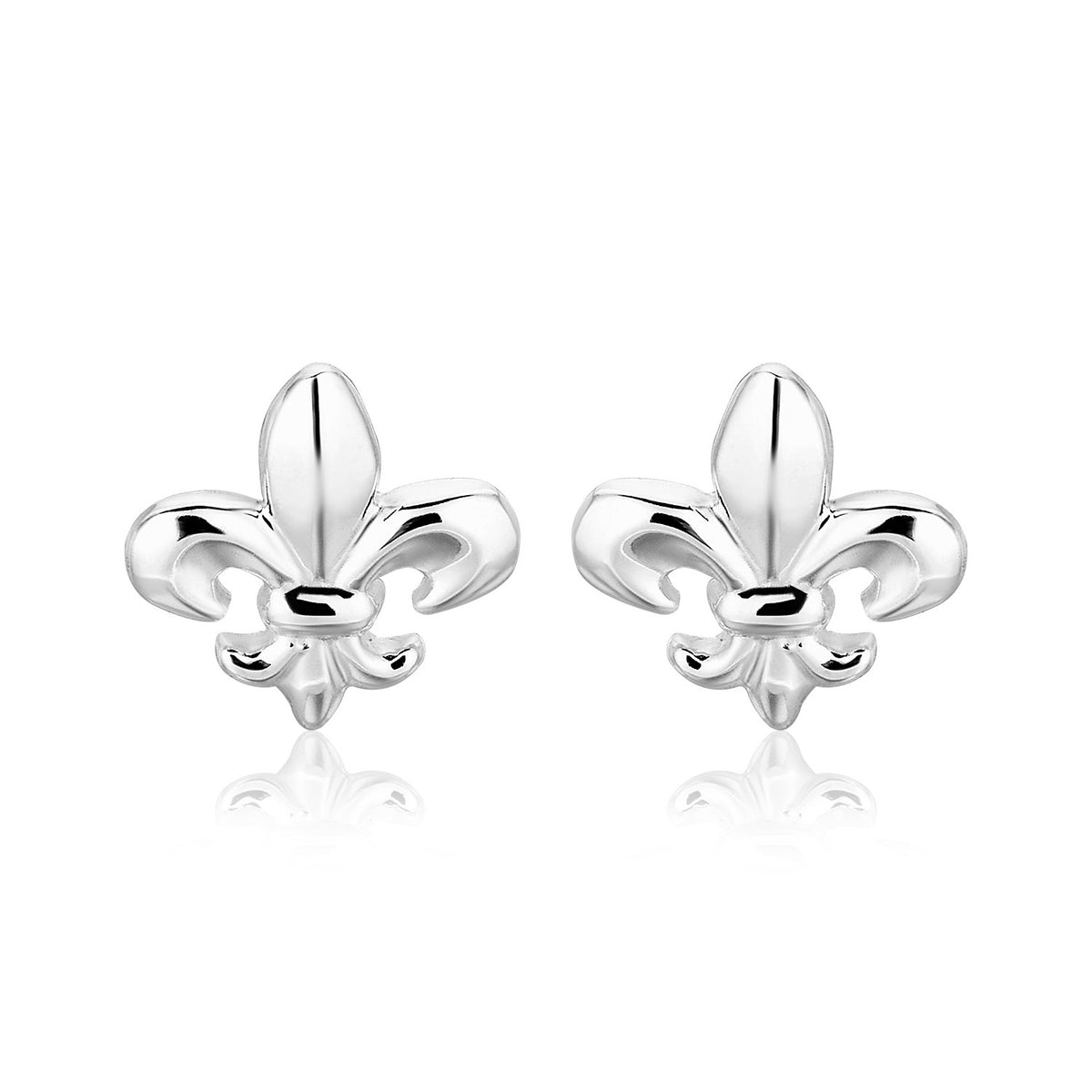 These beautiful earrings feature classic, polished fluer-de-lis symbols beautifully rendered in sterling silver. Post earrings are held in place by pushback clasps.