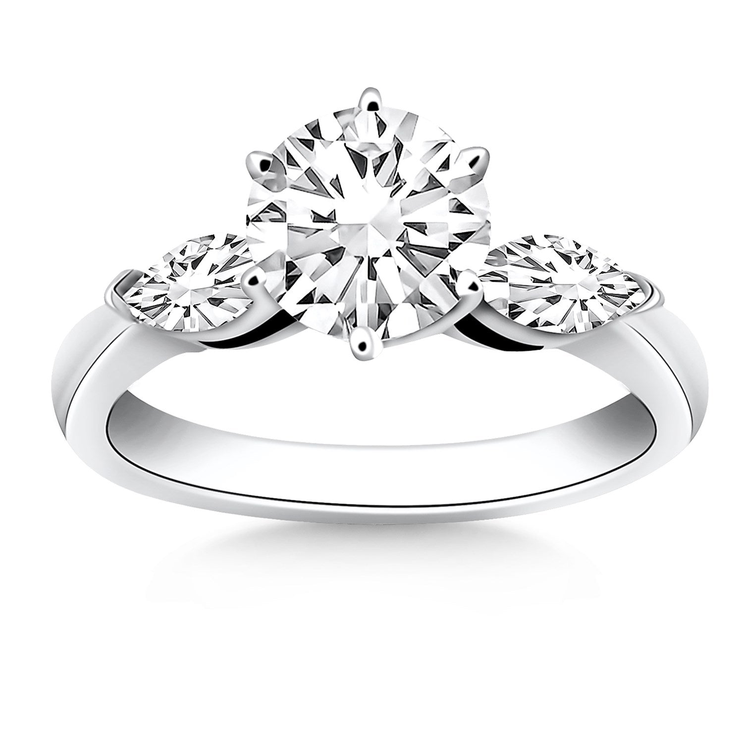 14k White Gold Three Stone Engagement Ring Mounting with Marquise Side Diamonds