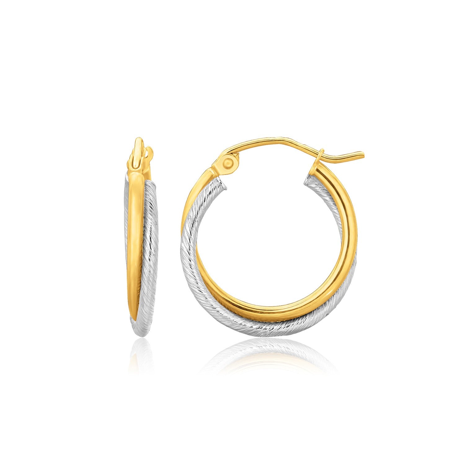 14k Two Tone Gold Double Polished and Textured Hoop Earrings