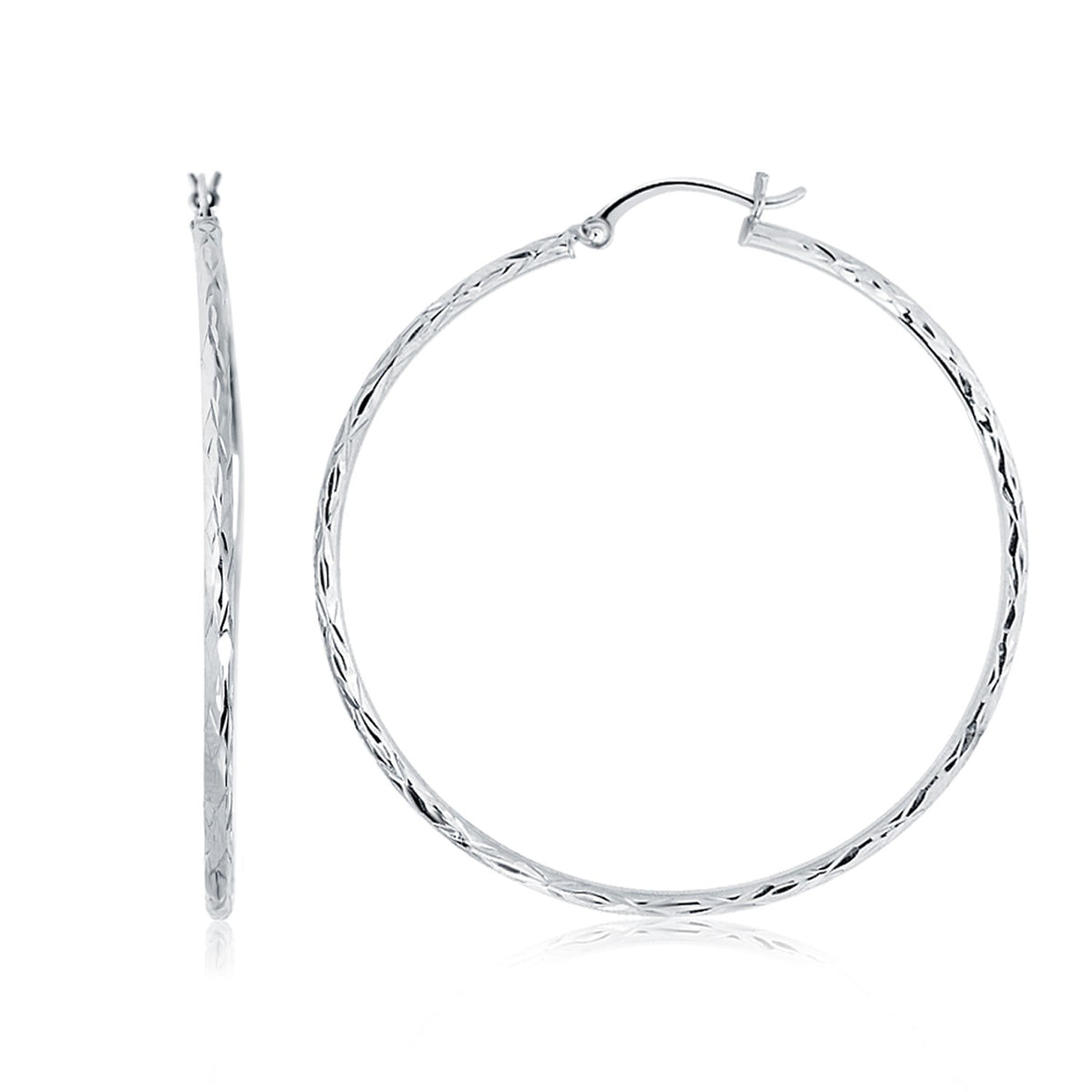 Classic Diamond Cut Hoop Earrings in 14k White Gold (2x45mm)