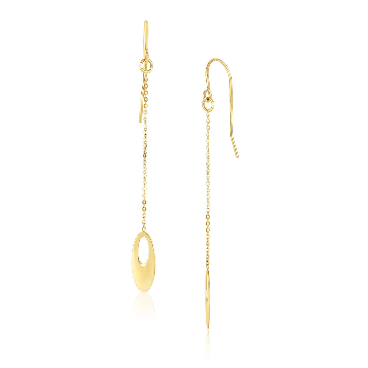 14k Yellow Gold Cutout Oval Chain Dangling Earrings