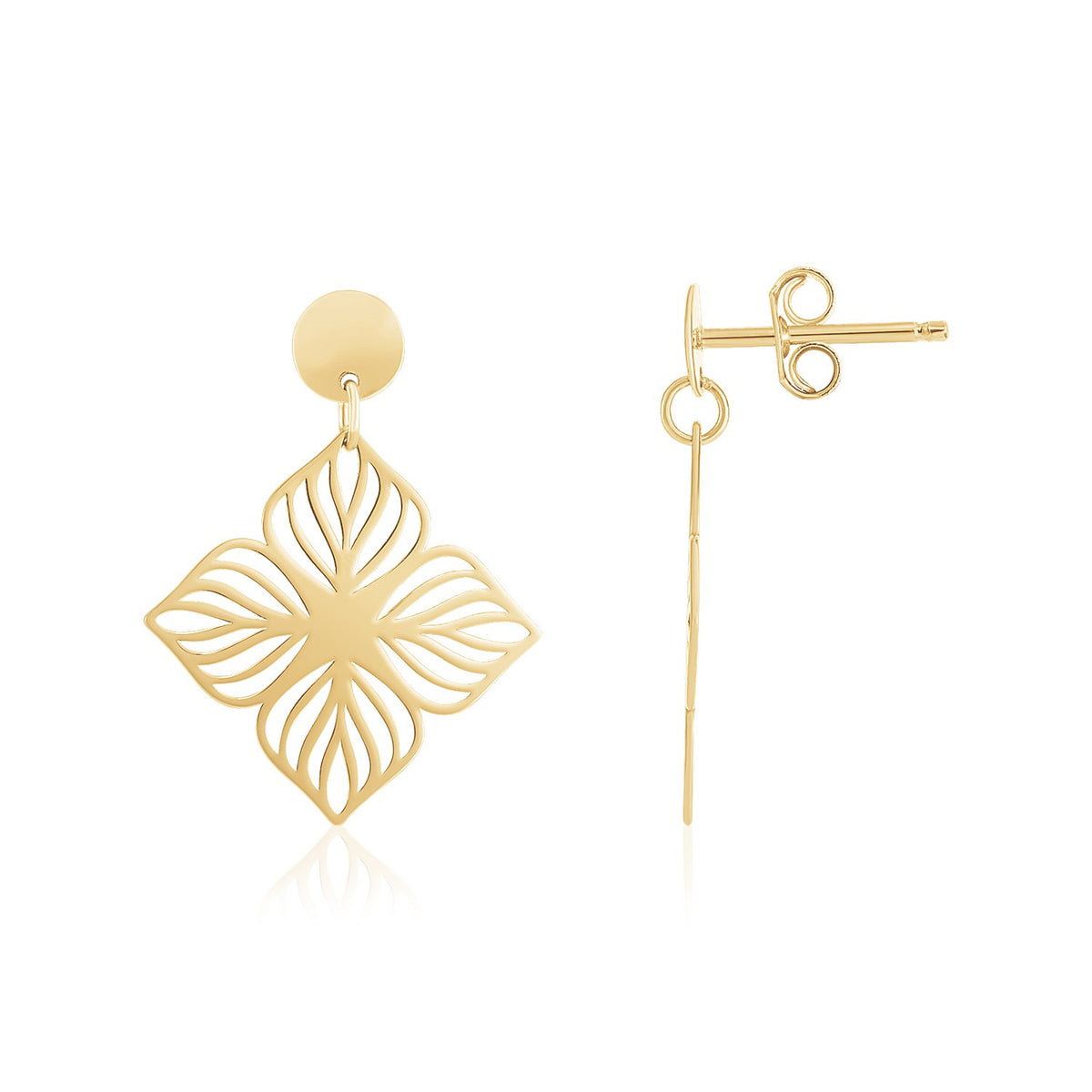 These Flower Cutout earrings is a graceful botanical design. you will stand out with this unique dangle flower design. Crafted in 14k yellow gold with a high polish finish and push back clasp.