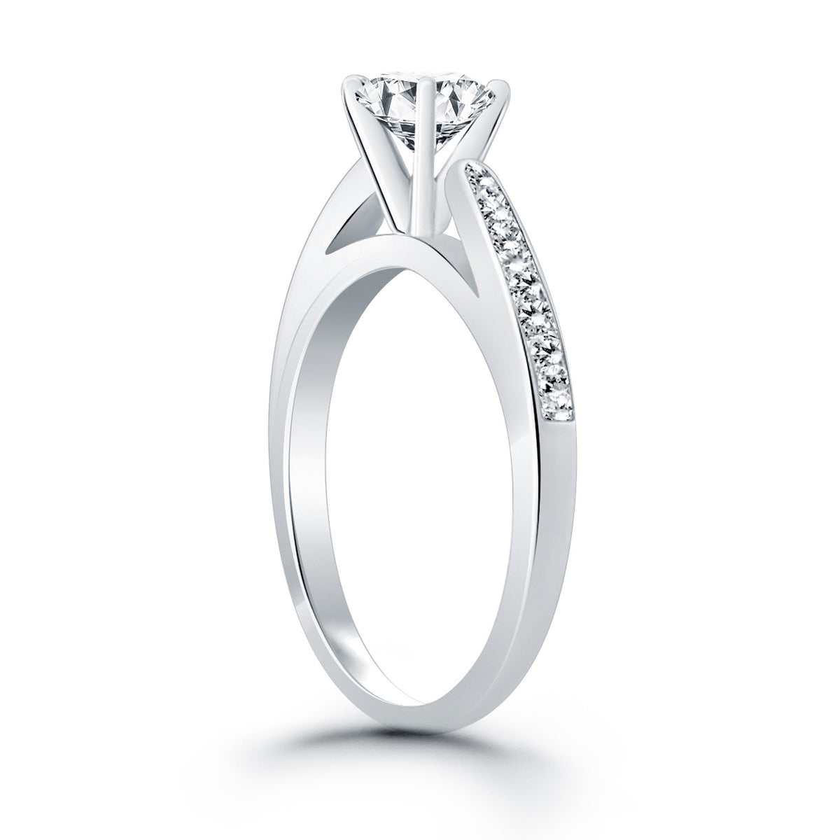 14k White Gold Cathedral Engagement Ring with Pave Diamonds