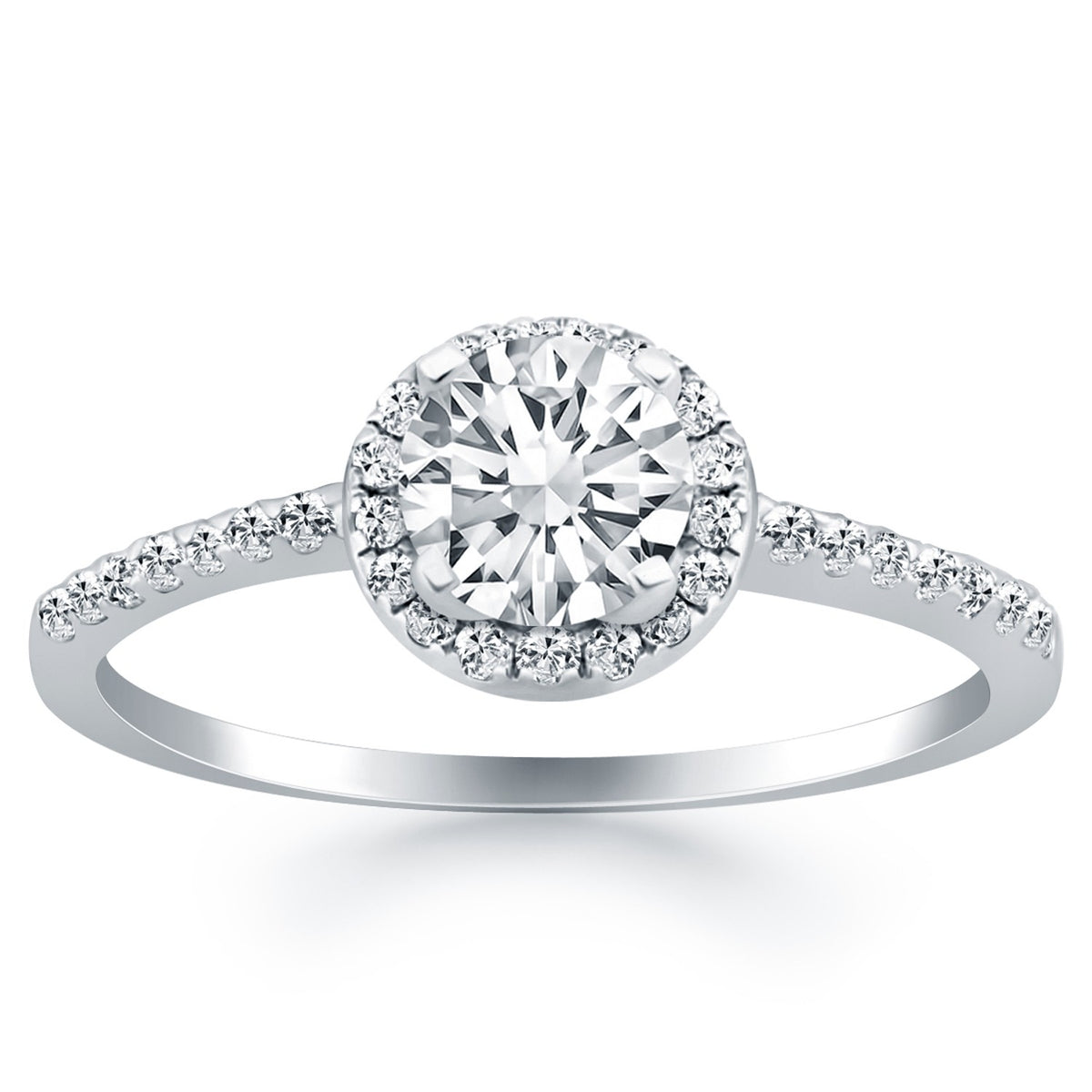 14k White Gold Diamond Halo Collar Engagement Ring Mounting