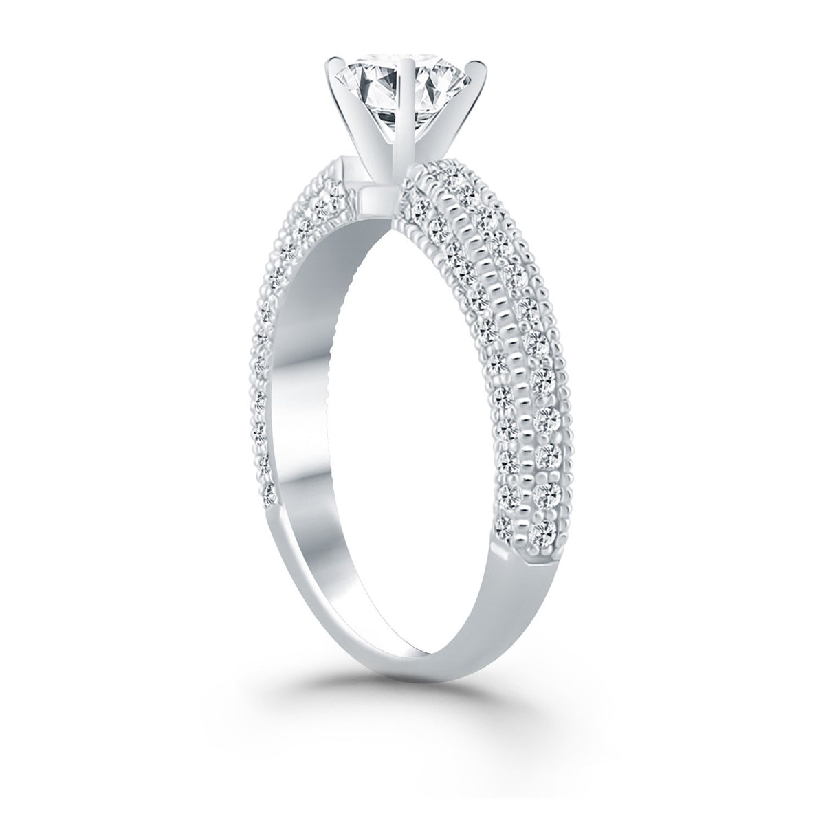 14k White Gold Diamond Micropave Milgrain Engagement Ring