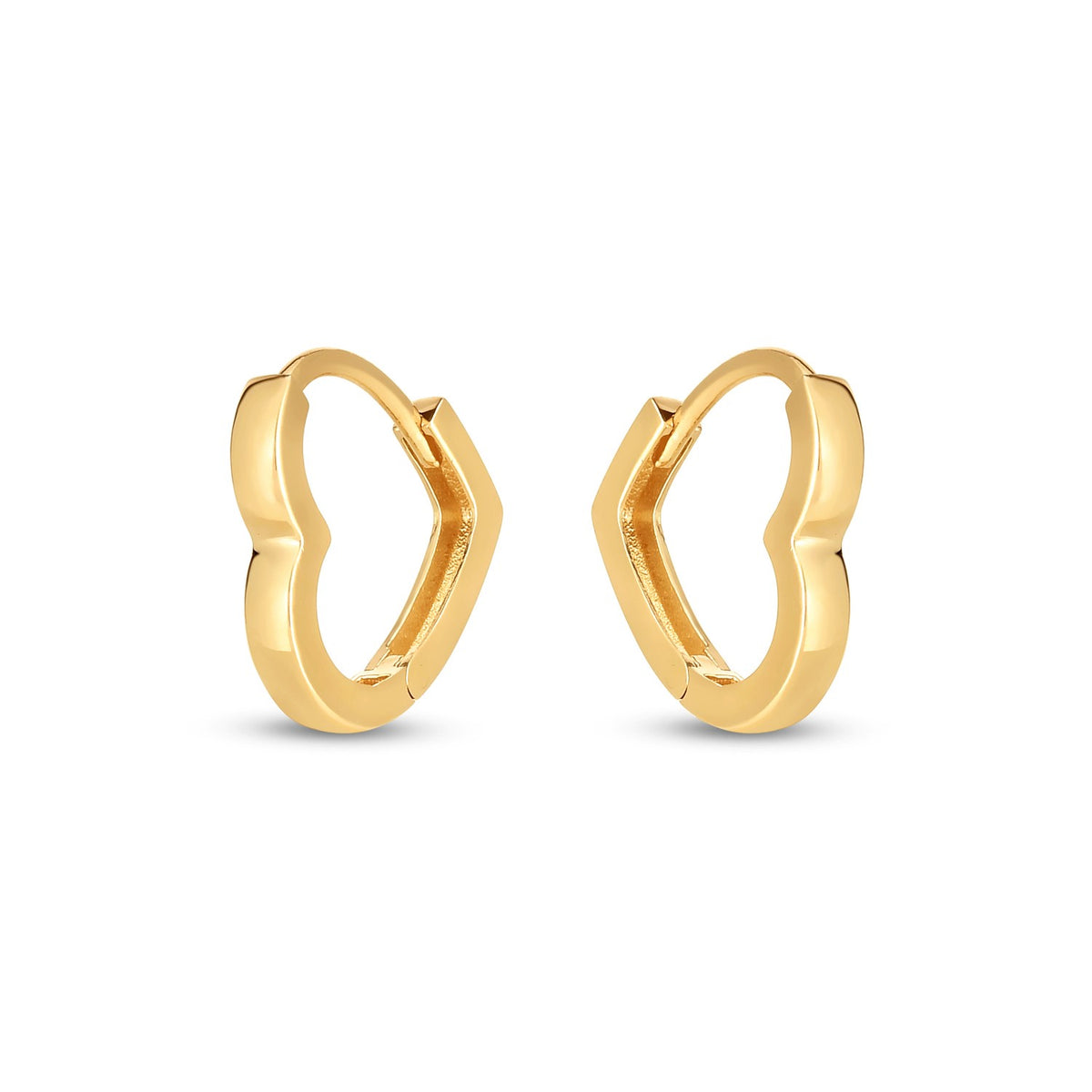 14k Yellow Gold Heart Huggie Hoops