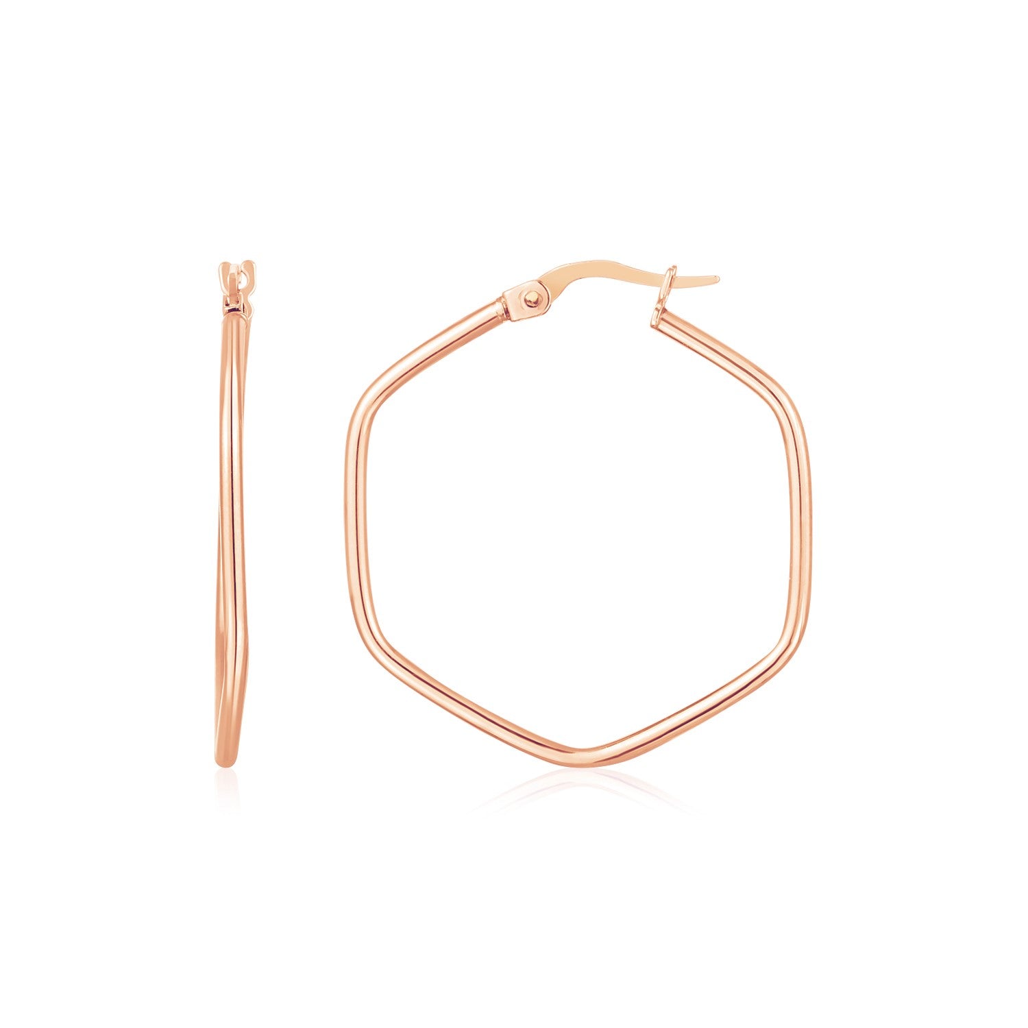 14K Rose Gold Hexagon Hoop Rounded Edge Earrings
