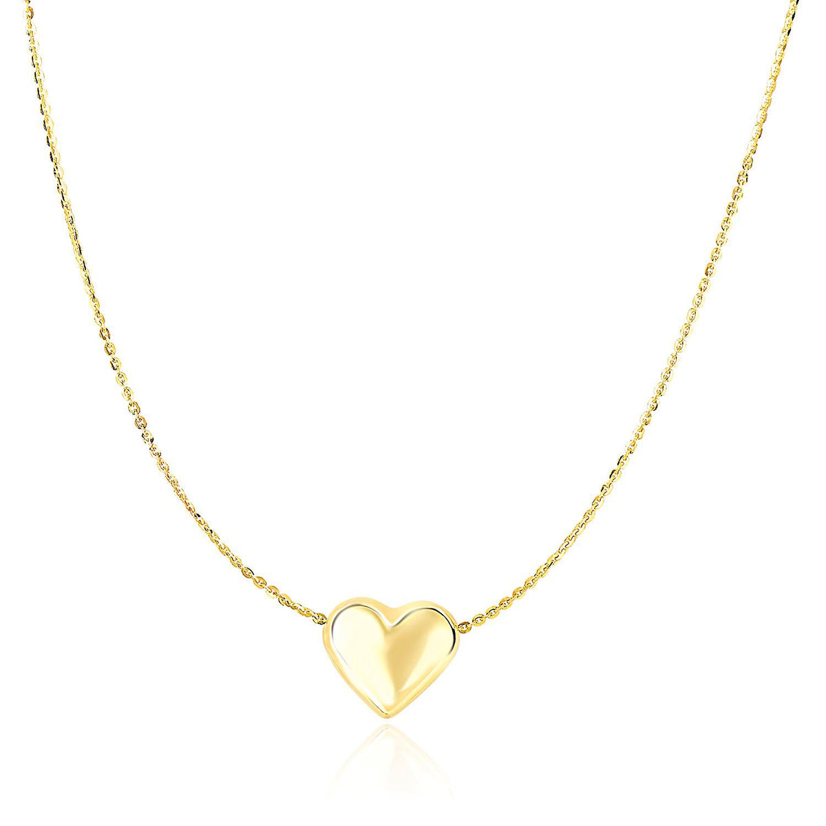 14k Yellow Gold Chain Necklace with Sliding Puffed Heart Charm