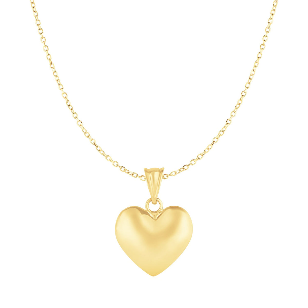Express your love with this classic gold pendant adorned with a beautiful puffed heart. The pendant is 18 inches long and closes with a lobster clasp.