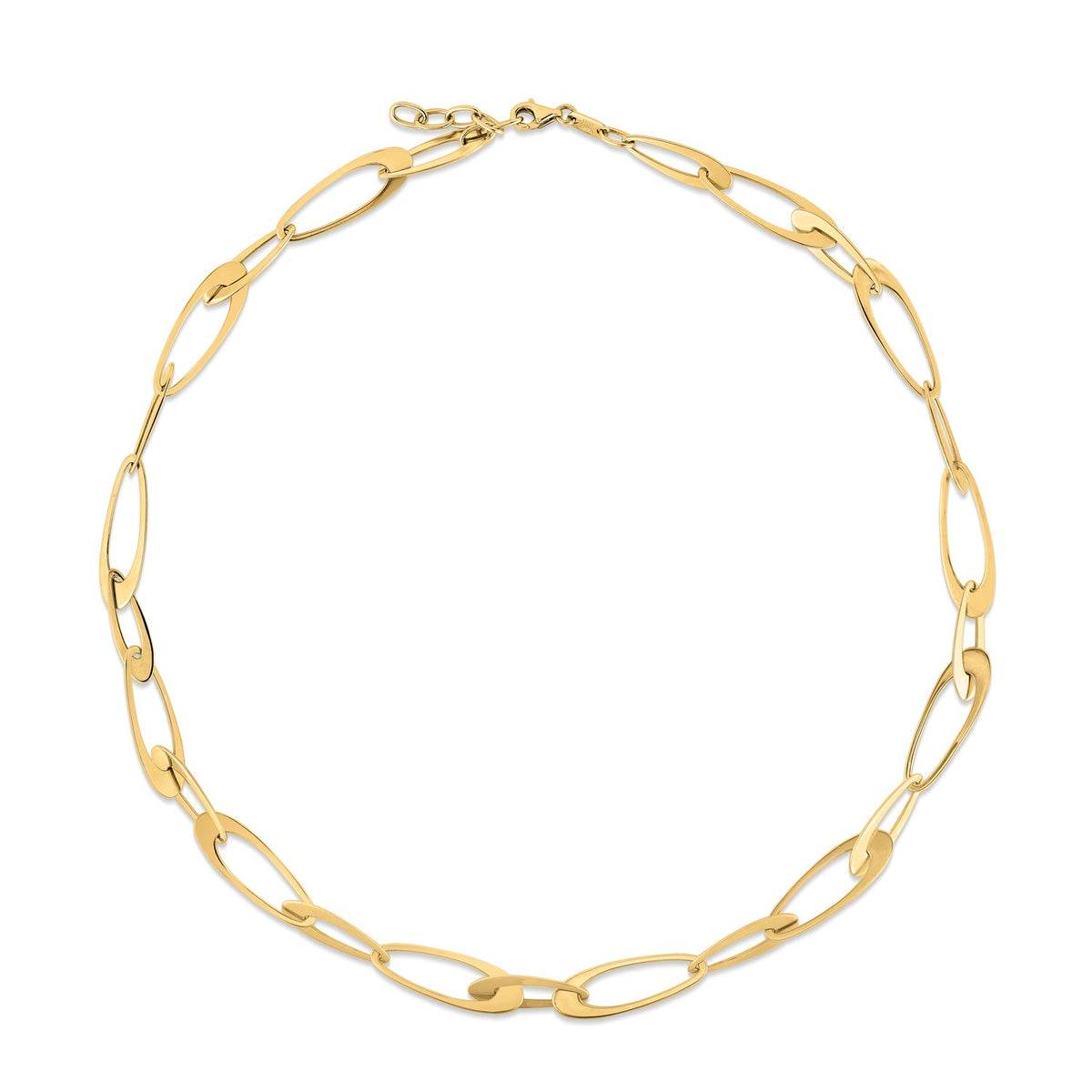 This Italian Oval Link necklace is great cross between bold & delicate. Great for layering or wearing independently, a perfect addition to add to anyone's collection. Crafted in 14k yellow gold with a high polish finish & a lobster clasp closure. Measuring 18 inches in length.