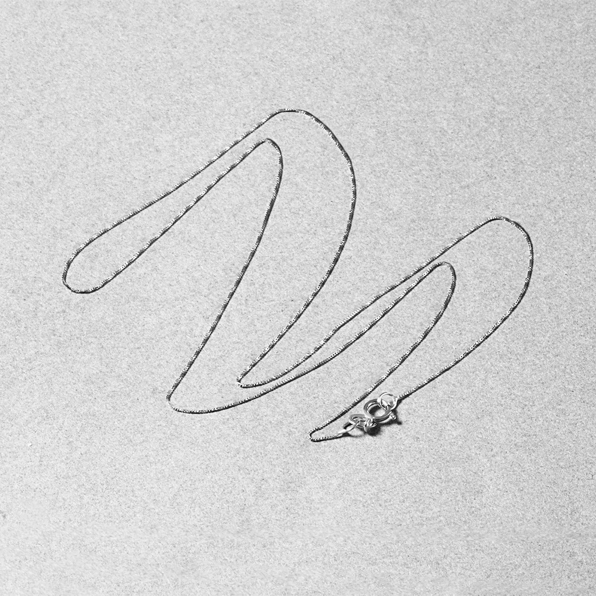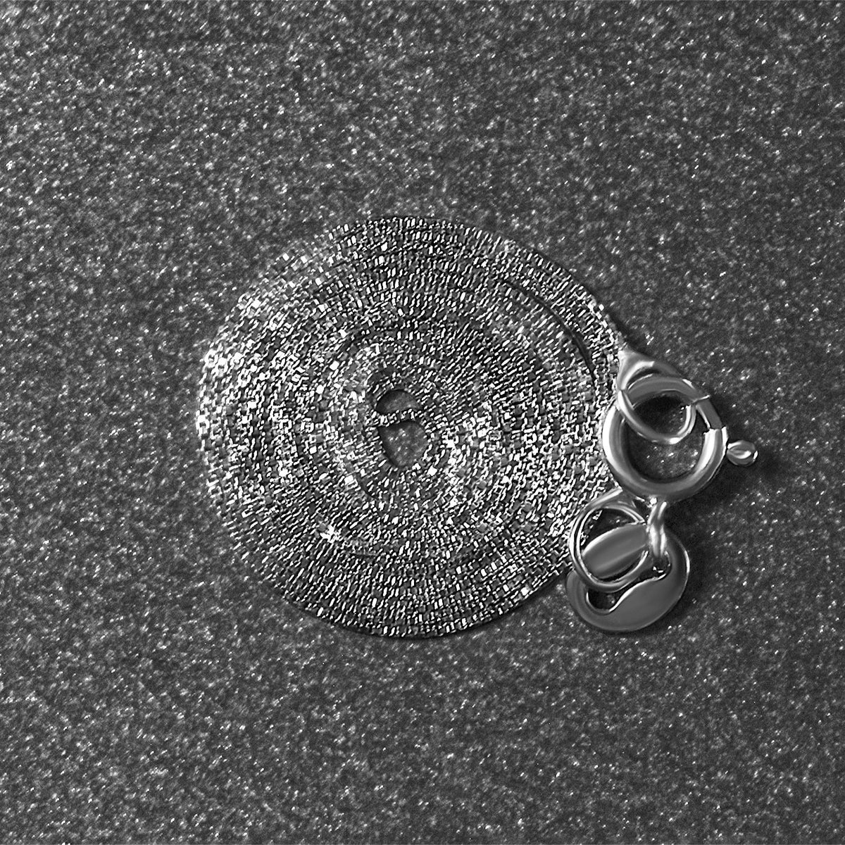 This classic box chain comes in 14k white gold and has a width of 0.40 millimeters.