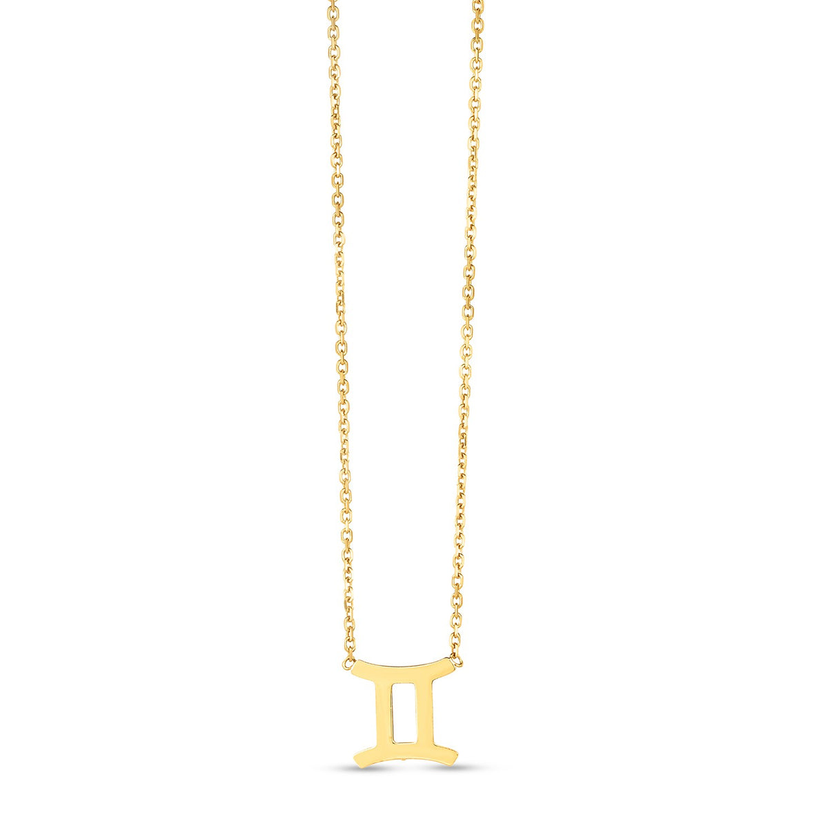 This Gemini necklace is beautifully crafted in 14k yellow gold with a high polish finish & secures with a spring ring clasp. This beautiful piece is hand crafted & a perfect piece for that special gemini in your life. Measuring 18 inches in length. Don't forget the matching earrings!
