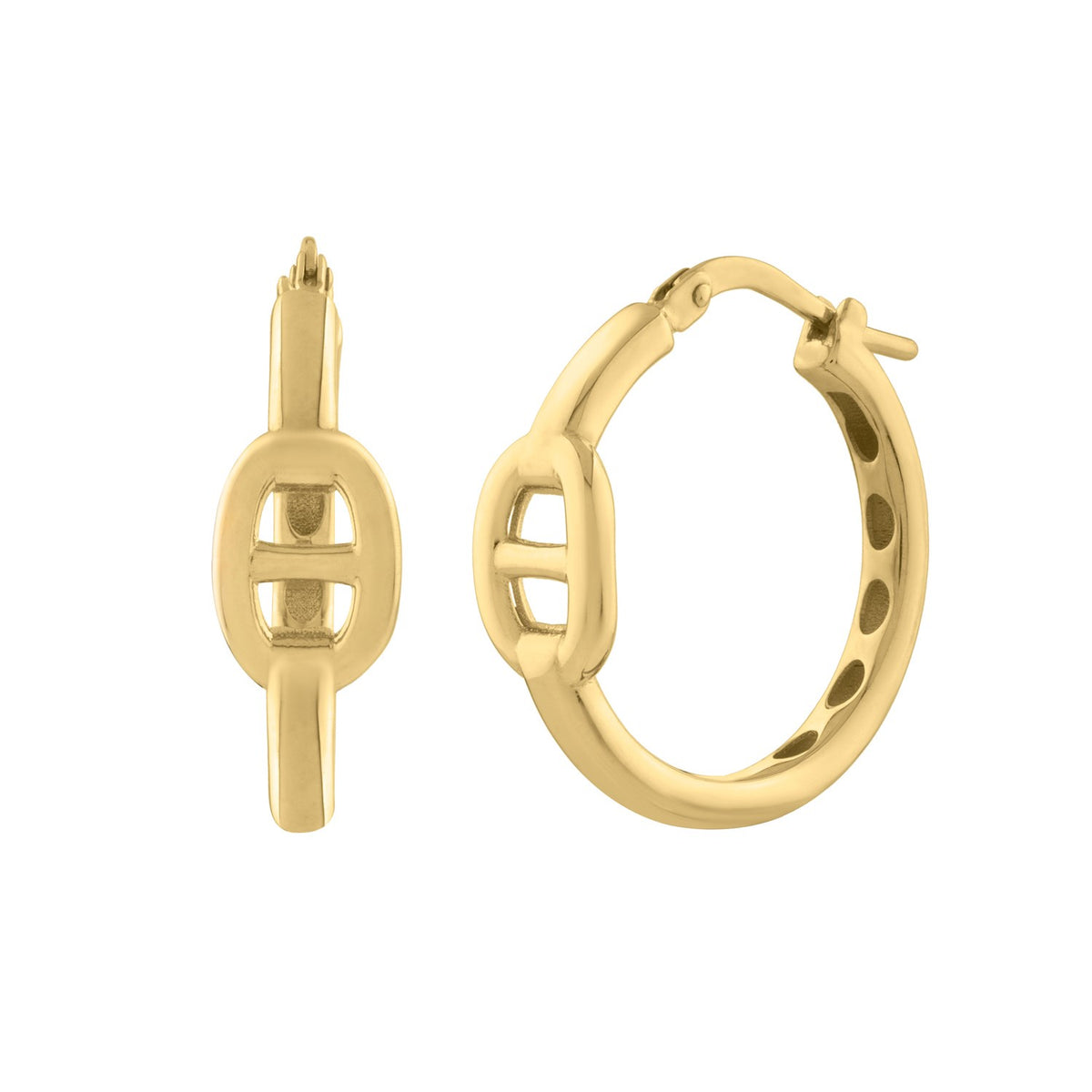 The perfect fusion of classic inspiration and contemporary style, these puff mariner hoop earrings feature a rounded profile that adds volume and depth. The sleek link embellishment creates a refined yet statement-making look and makes them a striking, versatile addition to any jewelry collection or a thoughtful gift for someone special secure with a hinged clasp.