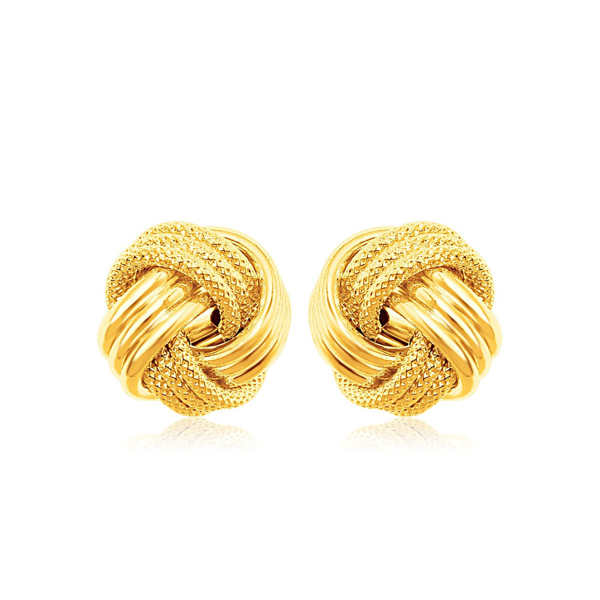 14k Yellow Gold Love Knot with Ridge Texture Earrings