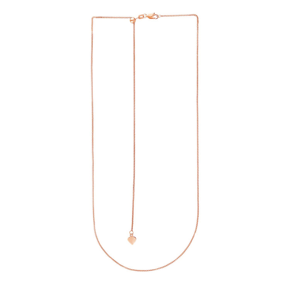 Crafted in 14k rose gold, this adjustable wheat chain measures a width of 1.00 millimeters and features a heart dangle accent. This chain is available in two sizes adjustable up to 22 inches and 30 inches and is fastened securely with a lobster clasp.