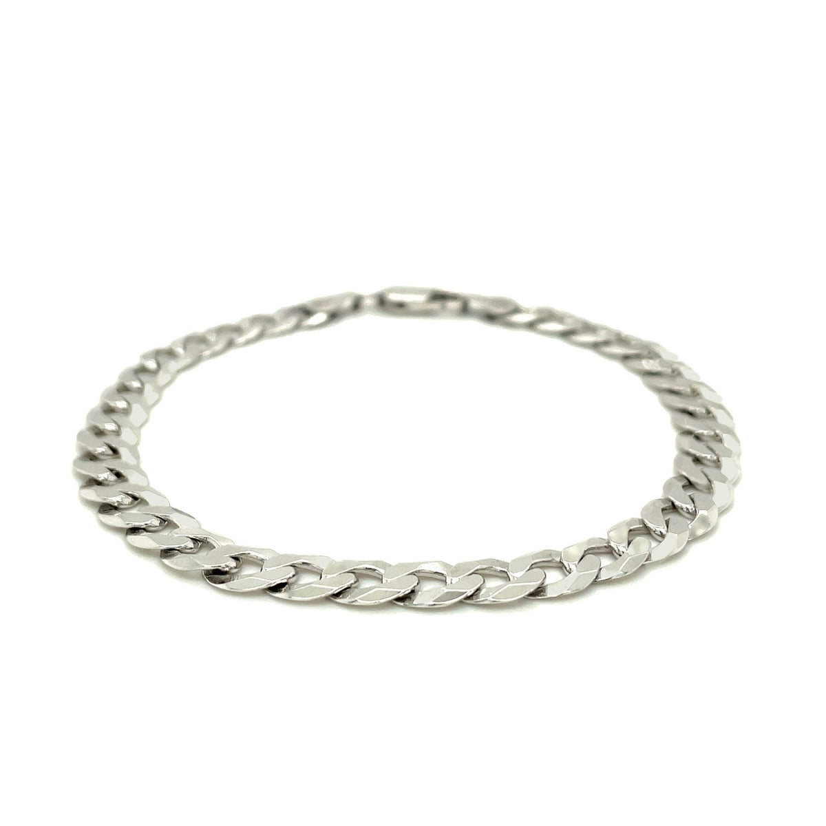 This classic rhodium-plated bracelet is crafted in gleaming sterling silver and has a width of 7.2 millimeters. Featuring a curb bracelet design, it is secured with a lobster clasp.