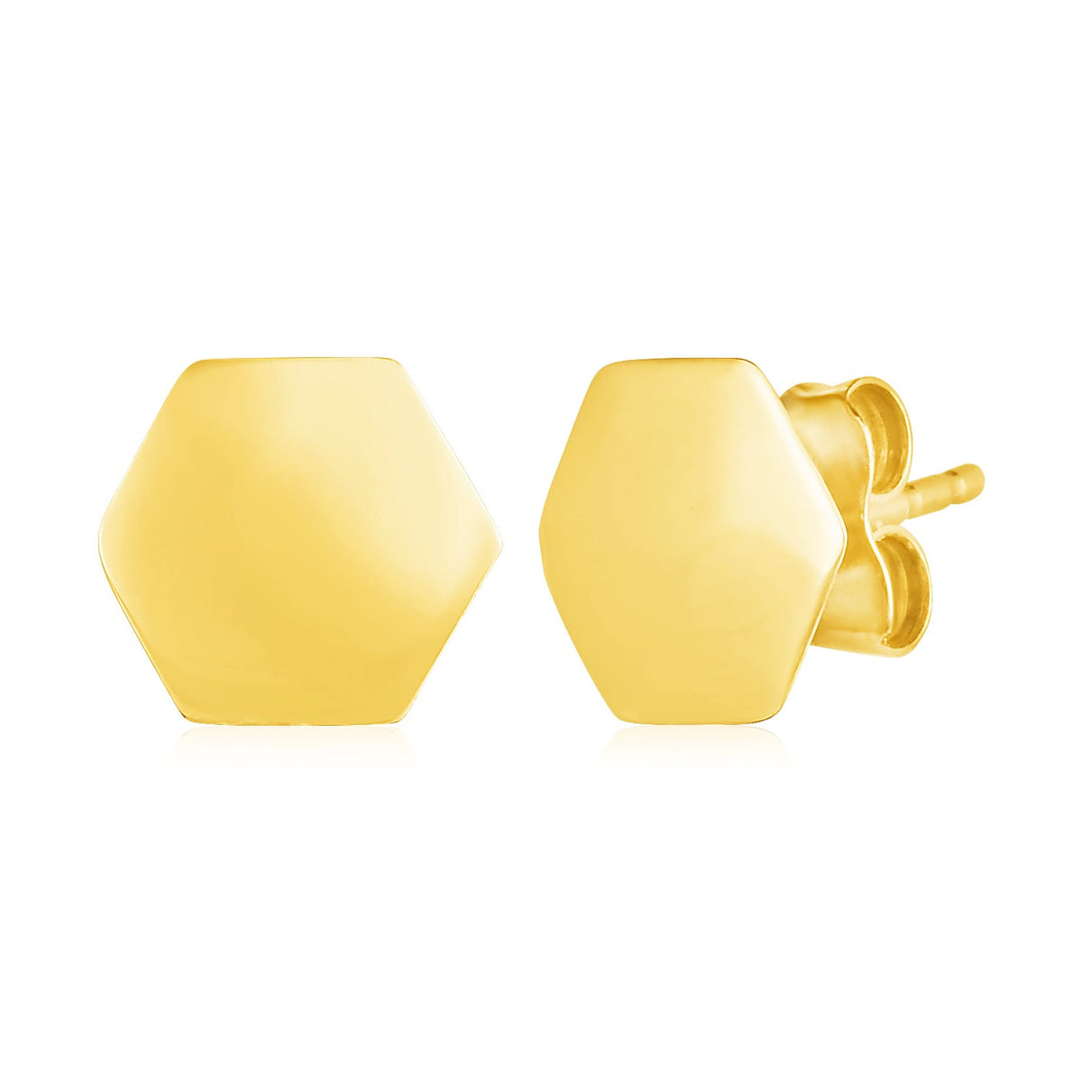 These lovely 14k yellow gold hexagon stud earrings will decorate your ears with brilliant, classic shine. Post earrings are held in place by pushback clasps.