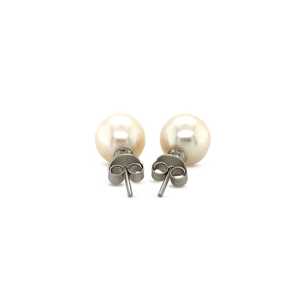 Classic pearl earrings are a timeless, sophisticated adornment for many occasions and wardrobes. Freshwater pearls measure 8 millimeters in diameter. Post earrings are held in place by pushback clasp.