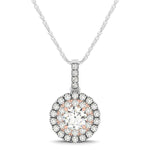 Round Shape Halo Diamond Pendant in 14k White and Rose Gold (1/2 cttw)
