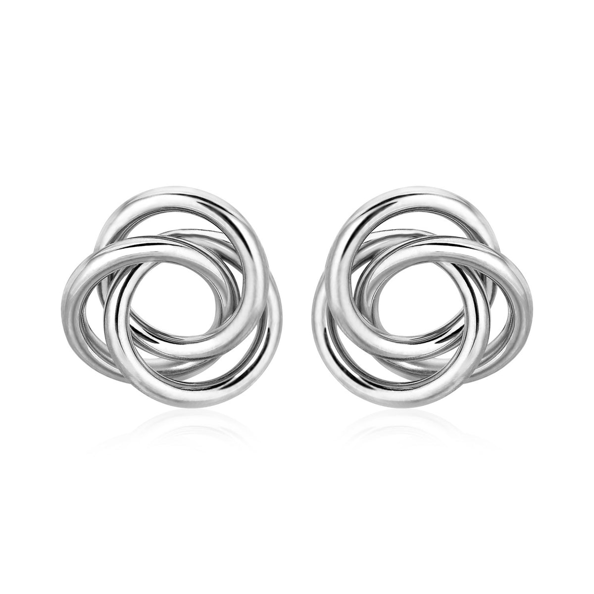 A modern interpretation of a classic love knot, these polished sterling silver earrings feature a classic, open geometric motif.