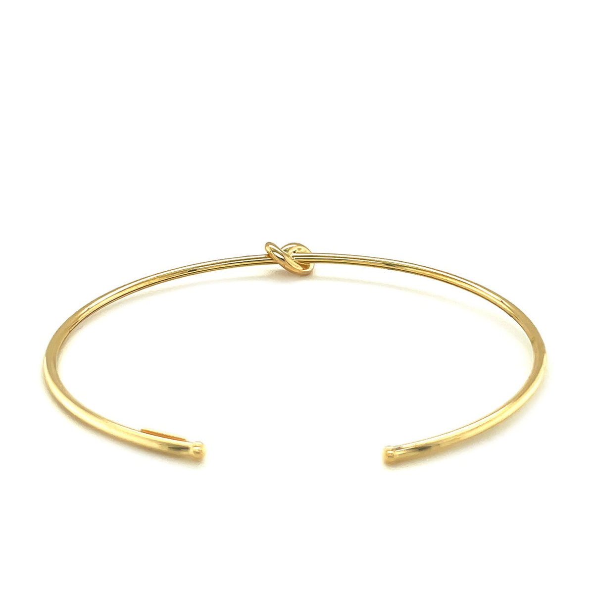 A subtle embellishment that will enhance many occasions, this beautiful 14k yellow gold cuff bangle is punctuated by a single elegant knot.