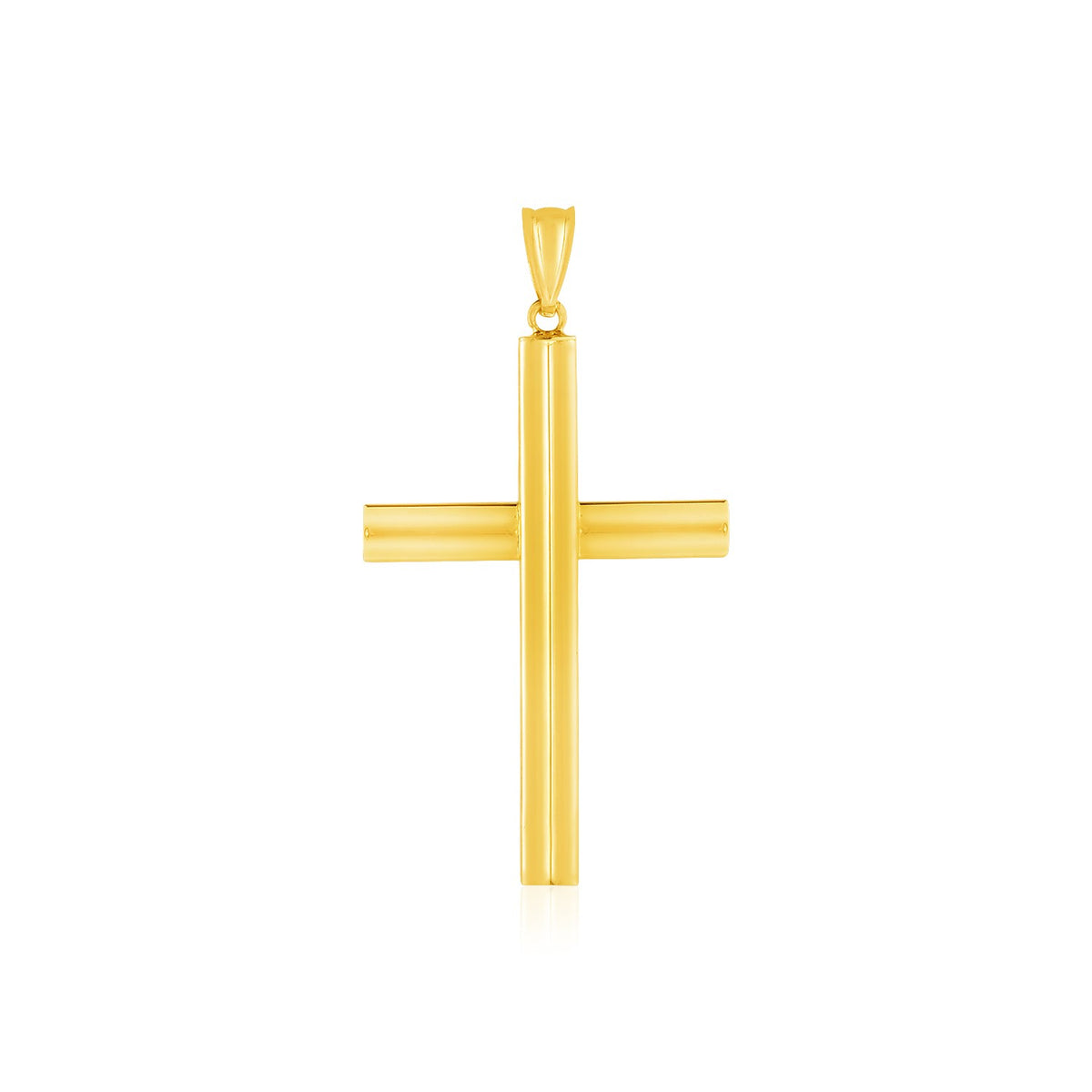 The simplicity of a traditional cross meets the inspiring shine of polished 14k yellow gold in this dramatic pendant.