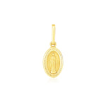 Classic and brilliant, this classic and elegant oval religious medal pendant is rendered in luminous 14k yellow gold.