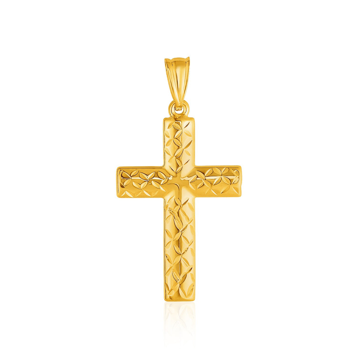 An elegant expression of faith, this cross pendant features a diamond-cut texture on one side and smooth shine on the other. Reversible pendant measures 18 millimeters by 35 millimeters.