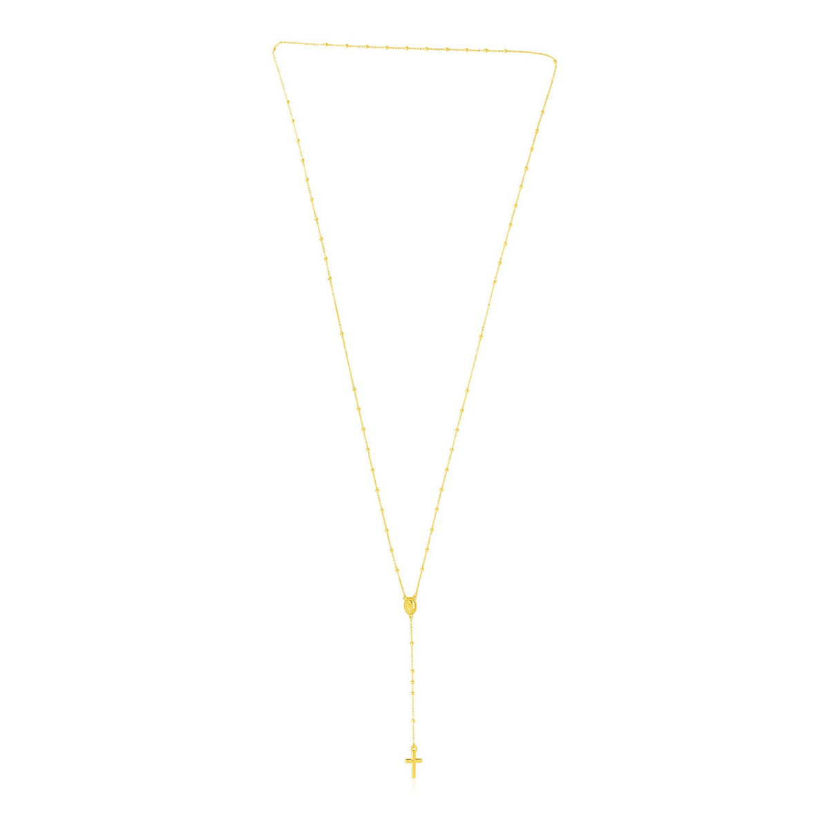 The inspiration of dazzling 14k yellow gold meets the traditional motifs of a classic rosary in this glorious necklace. Necklace is 26 inches long.